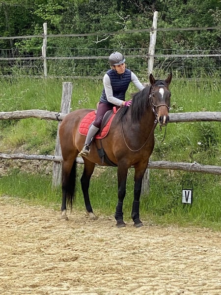 Alienor La Goudelie ist eine Stute mit einem seltenen Pedigree, die aus dem hervorragenden Stamm von Emir MTV stammt, der mehrere internationale Grand-Prix-Dressurpferde hervorgebracht hat, wie ihr Großvater Spartacus RBO unter Catherine Durand-Henriquet (Reservistin) bei den Olympischen Spielen in Atlanta. Ihre Mutter Maeva des Frettes hat selbst drei ausgezeichnete Grundgangarten, ihr Vater Largo du Coussoul, der ebenfalls auf hohem Niveau startet. Alienor ist voller Energie und liebt es, zu arbeiten und ihren Wert zu beweisen. Sie blieb jedoch auf der Zuchtstation, um zur Zucht eingesetzt zu werden, aber die Überzahl an Pferden machte es unmöglich, sie zur Zucht einzusetzen. Wir möchten einen Züchter finden, der sich verpflichtet, sie zur Zucht einzusetzen, damit sie all die hervorragenden Eigenschaften ihrer Abstammung weitergeben kann. Sie hat eine Basisarbeit, lebt das ganze Jahr über mit ihren Artgenossen auf der Weide mit Unterstand. Zahnarzt ok, Wurmkuren zwei- bis dreimal im Jahr. Das Video von 2024 zeigt einen Ausschnitt einer Wiederaufnahme der Arbeit nach mehreren Monaten ohne. Der Preis wird unter bestimmten Bedingungen zu diskutieren sein.