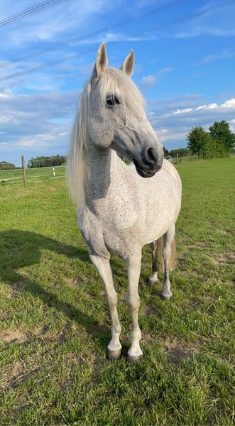 Liebe Pferdefreunde, Ich suche eine neue Heimat und einen neue Besitzer für meine Stute Bella, da ich ihr zeitlich nicht mehr gerecht werden kann. Bella ist eine 18-jährige Lusitano-Mix-Stute (Fliegenschimmel) mit einem Stockmaß von ca. 1,50 m. Bella ist ein liebevolles, feinfühliges und arbeitswilliges Pferd, das eine enge Bindung zu ihrem Menschen aufbaut. Mit Vertrauen und Sicherheit kann man sehr viel mit ihr erreichen. Sie ist an Hunde gewöhnt und geht gerne spazieren oder ausreiten. Außerdem liebt sie Horsemanship und Bodenarbeit, sie arbeitet also gerne sowohl in der Halle, als auch im Gelände. Bella ist offen für neue Aufgaben und Disziplinen (z. B. Dressurübungen, Working Equitation). Sie ist ideal für jemanden, der eine partnerschaftliche Beziehung zum Pferd pflegt und sich Zeit für sie nimmt. Durch Bodenarbeit konnte ich unsere Bindung sehr vertiefen. Sie braucht jemanden, der ihr Zeit, Vertrauen und klare, liebevolle Führung schenkt. Bella freut sich über einen Platz, an dem sie geistig und körperlich gefördert wird. Zubehör (Sattel, Trense, Halfter usw.) ist im Preis inbegriffen. Bei ernsthaftem Interesse oder weiteren Fragen freue ich mich über eine Nachricht! 🐴🤍
