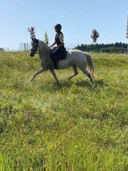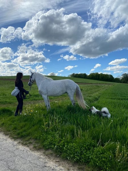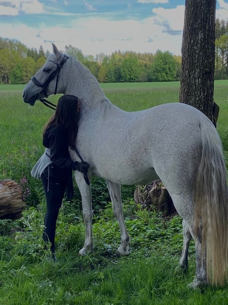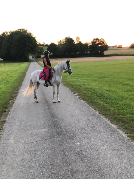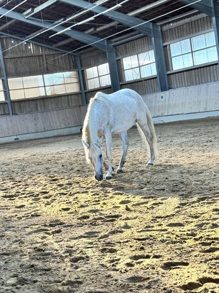 Dear Horse Enthusiasts, I am looking for a new home and owner for my mare Bella, as I can no longer dedicate enough time to her. Bella is an 18-year-old Lusitano cross mare (fly grey) with a height of approximately 1.50 meters. Bella is a loving, sensitive, and eager-to-please horse that forms a close bond with her handler. With trust and confidence, a lot can be achieved with her. She is accustomed to dogs and enjoys walks or rides outside. Additionally, she loves horsemanship and ground work, so she is happy to work both indoors and in the field. Bella is open to new tasks and disciplines (e.g., dressage exercises, working equitation). She is ideal for someone who values a partnership-based relationship with their horse and takes the time to work with her. Through ground work, I was able to deepen our bond significantly. She needs someone who offers her time, trust, and clear, loving leadership. Bella would thrive in a home where she is mentally and physically stimulated. Tack (saddle, bridle, halter, etc.) is included in the price. If you are genuinely interested or have further questions, I look forward to hearing from you! 🐴🤍