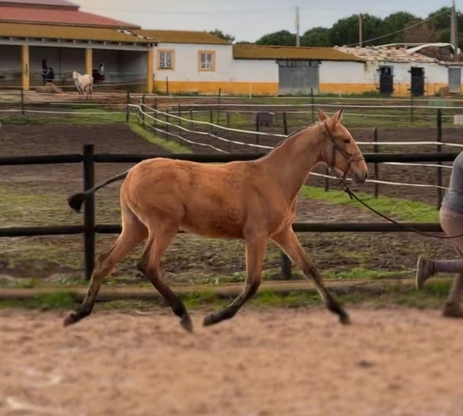🌟Exklusive Buckskin-Stute mit hochkarätiger sportlicher Abstammung🌟 VAIANA DO ARNEIRO Merkmale: - Rasse: Lusitano - Geschlecht: Stute - Geburtsjahr: 2025 - Farbe: Buckskin (kein Schimmel / no grey) - Stockmaß: 1,63 m (Endmaß geschätzt) ⸻ VAIANA DO ARNEIRO ist eine außergewöhnlich hochwertige junge Stute, die alles vereint, was man sich von einem Zukunftspferd wünscht: eine seltene goldene Buckskin-Farbe, ein herausragendes Temperament und eine hochkarätige sportliche Abstammung. Sie zeigt bereits jetzt einen klaren Kopf und liebenswerten Charakter. ⸻ ✨ Charakter & Bewegung: 🤍 Außergewöhnlich gutes Temperament 🧠 ruhig, menschenbezogen & sehr klar im Kopf 🌟 Sehr gute, natürliche Bewegungen 🐎 Wunderbarer Charakter ➡️ Eine junge Stute, bei der man schon jetzt erkennt, dass sie mentale Stärke und Qualität mitbringt. ⸻ 🧬 Hochkarätige Abstammung ✨ Vater: LOTUS DE SENA • sehr gut gekörter Hengst • erfolgreich bis Grand Prix in Portugal • bekannt für Leistungsbereitschaft, Rittigkeit & Qualität ✨ Mutter: LIPA DE REAL • gekört mit über 72 Punkten • steht für Korrektheit, Charakter und Verlässlichkeit ➡️ Eine Blutlinie, die Sport, Charakter und Zukunftsperspektive vereint. ⸻ 🎯 Perspektive & Einsatz VAIANA DO ARNEIRO ist ideal für: 🔸 ambitionierte Reiter, die ihr Pferd von klein auf selbst aufbauen möchten 🔸 Zucht (Farbe, Grand-Prix-Blut, Charakter) 🔸 langfristige Ausbildung mit Fokus auf Partnerschaft & Qualität ➡️ Eine Stute, die man mit Bedacht auswählt – und langfristig behält. ⸻ 💎 Besonderheiten: 🌟 Seltene, goldene Buckskin-Farbe 🌟 Kein Grey / kein Schimmel 🌟 Grand-Prix-Abstammung 🌟 Überdurchschnittlicher Charakter ⸻ 🌟 Fazit: VAIANA DO ARNEIRO ist eine echte Ausnahme-Stute: ✅ exklusive Farbe ✅ hervorragende Abstammung ✅ außergewöhnlicher Charakter ✅ sehr gute Bewegungen ✅ enormes Zukunftspotenzial ⸻ 📞 Kontakt & Besichtigung VAIANA DO ARNEIRO kann nach Vereinbarung besichtigt werden. Ich freue mich auf ernsthafte Anfragen und nehme mir gerne Zeit für ein persönliches Gespräch.