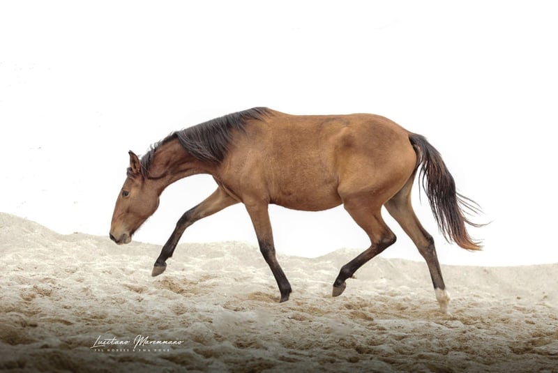 Charming Lusitano mare with a big heart Characteristics: - Breed: Lusitano - Gender: Mare - Year of birth: 2024 - Color: bay - Height: Final height estimated 158cm, the mother is 154cm and the father 164cm This young mare is not only a real eye-catcher, but will certainly be an ideal partner for relaxed rides and leisure activities. We could also imagine this relaxed young mare in dressage or working equitation. She is also interesting for breeding, as both dam and sire were licensed with 70 points. With her friendly and trusting nature, she will quickly win the heart of her new owner. She demands to be stroked every day and enjoys it very much. Ulia is very well behaved, knows the hoof trimmer, is halter trained and can be loaded perfectly. On the last two pictures you can see her father Octal again. At the moment Ulia is growing up in a wonderful rearing facility, where she can grow in peace and is provided with the best food. She is extremely compatible with other mares. I can send you more pictures and videos if you are interested.