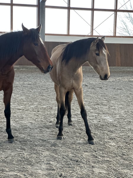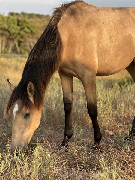 Unica ist ein absolutes Charakterpferd. Sie ist nicht nur eine wunderschöne Falb-Stute, sie ist auch sehr feinfühlig und intelligent. Sie bewegt sich wie eine Feder und ist immer gut drauf. Unica liebt es etwas mit dem Menschen zu machen, sei es Spazieren gehen, geputzt zu werden oder einfach nur gekrabbelt zu werden. Im Februar 2024 ist sie geboren und misst derzeit schon 149 cm. Das geschätzte Endmass beträgt 161 cm. Derzeit lebt sie mit anderen Stuten im Herdenverband. Beim Hufschmied ist sie artig und lässt alle 4 Hufe brav bearbeiten. Aufgrund von Bestandsverkleinerung suchen wir für Unica ihren Herzensmenschen. Sie möchte die Welt pferdegerecht und liebevoll kennenlernen. Der Character lusitanischer Pferde ist einzigartig. Sie sind unglaublich schlau und wollen gerne gefallen. Sie lieben die Zusammenarbeit mit ihrem Menschen wenn sie eine Sprache sprechen. Aufgrund der Abstammung und des Bewegungspotentials kann Unica auch für die Zucht interessant sein. Sie ist bei der APSL registriert und hat ein blaues Buch.