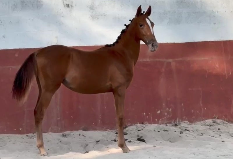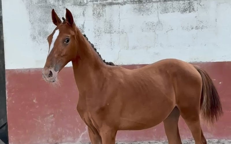 Striking 1-year-old Filly with Exceptional Bloodlines Born in September 2024, Ulaya is a beautifully marked leopard-spotted chestnut filly with an outstanding pedigree rooted in top sport horse lines. Her grandsire, Dragon, is among Poland’s premier breeding stallions, while her sire, Zeplin do Top, is a renowned Lusitano known for producing high-quality dressage and working equitation horses. Ulaya has a lovely temperament—calm, responsive, and quick to learn. She is halter trained, stands quietly for both the farrier and the vet, lunges well, and is confidently handled in day-to-day routines. All her paperwork and vaccinations are fully up to date. Correctly and thoughtfully started from the beginning, Ulaya promises a bright future—whether in sport or as a valuable addition to a breeding program. Please WhatsApp to contact me