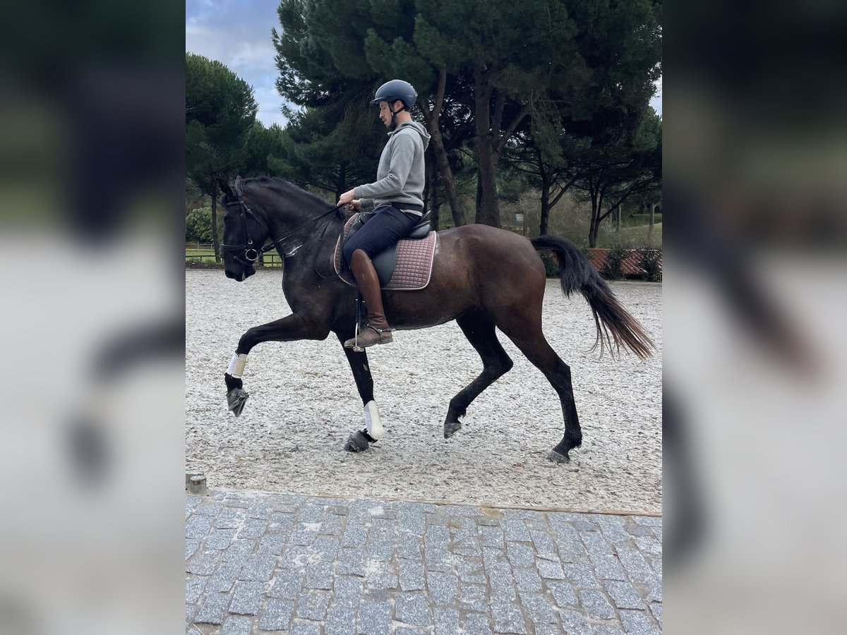 Serenata est une jeune jument lusitanienne de robe noire, au profil baroque, avec une petite tache blanche en forme de flocon de neige sur le front. Sa morphologie remarquable fait d’elle une étoile parmi ses congénères. Née dans notre élevage (www.coudelaria-linda-oliveira.com), elle a passé son enfance et sa jeunesse en troupeau, tout en apprenant à nouer des liens quotidiens avec l’humain. C’est une jeune demoiselle très affectueuse et proche de son cavalier, qui débute sa carrière en tant que cheval de selle. À l’âge de trois ans et demi, elle a été monté en licol, longée, travaillée en liberté et récemment doucement monté en selle. Son enthousiasme pour l’apprentissage et sa volonté de coopérer nous impressionnent. C’est une véritable perle qui, sans aucun doute, brillera de mille feux, avec une présence exceptionnelle, et qui sera une fidèle compagne pour son propriétaire. Bien entendu, elle nécessite encore du temps en formation, ce qui explique qu’elle puisse rester chez nous pour sa préparation de base. C’est une occasion unique d’acquérir cette magnifique jument lusitanienne noire, car peu de chevaux comparables existent. Son pedigree est intéressant pour la reproduction, et elle pourra transmettre sa couleur noire, rare chez les Lusitaniens. Son père, Lidador OC, est un étalon de 10 ans, performant en Grand Prix, de robe noire. Sa mère appartient à une lignée ancienne de taureaux de combat. Elle possède sans doute le courage et la capacité de collection nécessaires pour la Working Equitation. Elle a été présentée avec succès à l’âge de deux ans lors du festival des jeunes juments à Cascais. N’hésitez pas à nous demander plus de vidéos et d’informations par WhatsApp au +33 6 74 48 21 24.