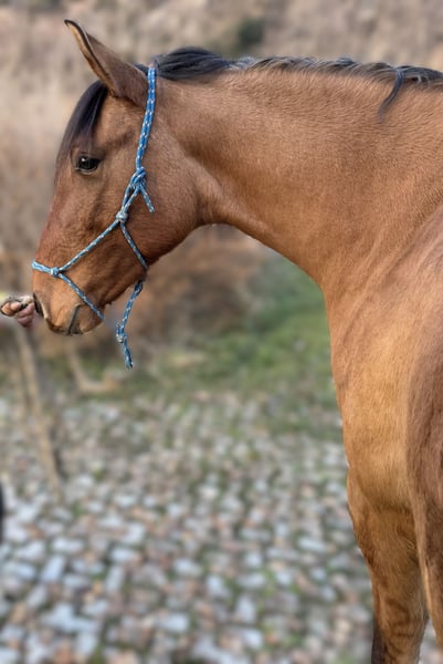 Hier wird eine neue Fünf-Sterne-Wahl für ESENCIA vorgestellt: eine junge lusitanische Stute (ohne Rassepapiere). Sie ist 4,5 Jahre alt und derzeit etwa 1,55 m groß am Widerrist, unbeschlagen. Sie ist äußerst gesund. Ihr wunderschönes Fell erinnert an Damhirschleder, mit Zebrazeichnungen an den Beinen und üppigem Langhaar. Sie verfügt über weiche, elastische Bewegungen und eine natürliche Veranlagung, das Hinterbein aktiv zu engagieren. Sie ist talentiert und vielseitig. Im Training an der Longe und am Boden arbeitet sie nach den Prinzipien eines respektvollen, klassischen Reitens. Sie ist äußerst sensibel und intelligent, neugierig und mutig, sanft, aber zugleich feurig und anspruchsvoll. Sie sucht die Gesellschaft anderer Pferde und den Kontakt zum Menschen. Geeignet für eine ruhige, erfahrene, kompetente und liebevolle Person. Ein Pferd fürs Leben, das große Freude bereiten kann.