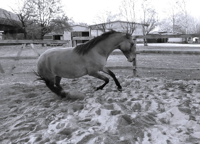 Si considera una nuova casa a 5 stelle per ESENCIA: giovane cavalla lusitana (no documenti di razza). 4 anni e mezzo, attualmente alta circa 155 cm al garrese, sferrata. Sanissima. Bellissimo manto Pelle di daino, con zebrature sugli arti e crini folti. Andature morbide ed elastiche, naturale predisposizione ad ingaggiare il posteriore, dotata e versatile. In addestramento alla longe e da terra, secondo i principi di una monta classica rispettosa. ESTREMAMENTE SENSIBILE E INTELLIGENTE, curiosa e intraprendente, dolce ma al contempo focosa ed esigente. Cerca la compagnia di altri cavalli e dell'essere umano. Adatta a una persona calma, competente, dotata di esperienza e gentilezza; IL CAVALLO DI UNA VITA, in grado di regalare enormi soddisfazioni.
