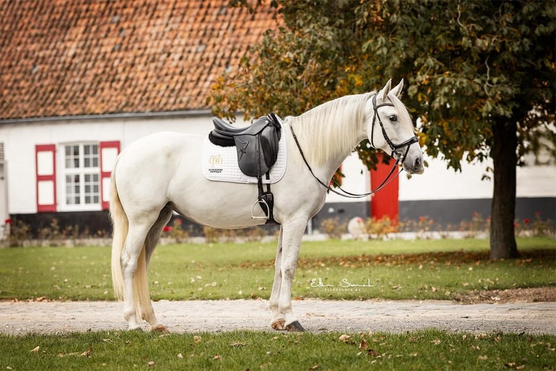 Roísín do Rei is a truly striking and powerful Lusitano mare, aged 4.5 years. Intelligent, kind, and nicely balanced in every sense. She is the kind of horse that seems to be able to “read and write” — quick in understanding & always eager to please. Sired by GARRETT, a recommended stallion recognized for his Grand Prix achievements. Mother is Maestra do Rei, a champion mare by the renowned Olympic stallion RUBI AR. This full-papered mare carries outstanding bloodlines and undeniable potential. She stands 1.60m at withers and offers three ground-covering and elastic gaits. Roísín is exceptionally well-behaved, easy to handle, and has no stable vices. She is confident, sweet-natured, and is thoughtfully and responsibly trained by Florence Kerckhove (LusiFlows). Currently, she starts with some lateral work in her training and she loves to take a jump. So working equitation could be an option too. She has a complete set of recent & clean X-rays (august 2025). She is currently stabled in Blankenberge, Belgium and is ready to enchant her next dancing partner!