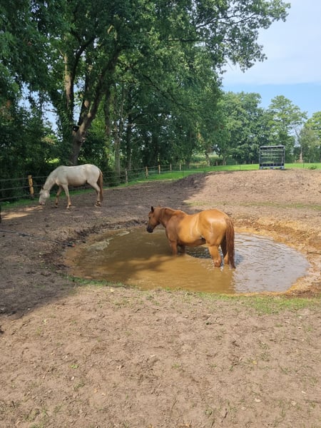 Prachtige cremello merrie met blauwe ogen. Ontzettend lief en knuffelig. Kan zowel normaal als western gereden worden. Wordt hier nu western gereden. Tevens geschikt als fokmerrie. Is gevoelig aan de hulpen en kan goed gereden worden met touwhalster. Ze is goed voorwaarts een reageert ook goed op de rem. Ze is nu 1,5 jaar onder het zadel en nog wel wat groen. Ze is leergierig en pakt onwijs snel dingen op. Ze vind het leuk om te werken en wil het graag goed doen. Ze is slim, gevoelig en dapper. Ze is met wandelen gewend aan verkeer. We wonen aan en drukke weg. Ze is ontzettend braaf met de hoefjes, deze worden natuurlijk bekapd. Ook de trailer is geen probleem. Ze staat hier 24/7 buiten in een kleine kudde en krijgt alleen ruwvoer. Ze moet helaas met spoed weg ivm ruimte tekort, vandaar de lage prijs!