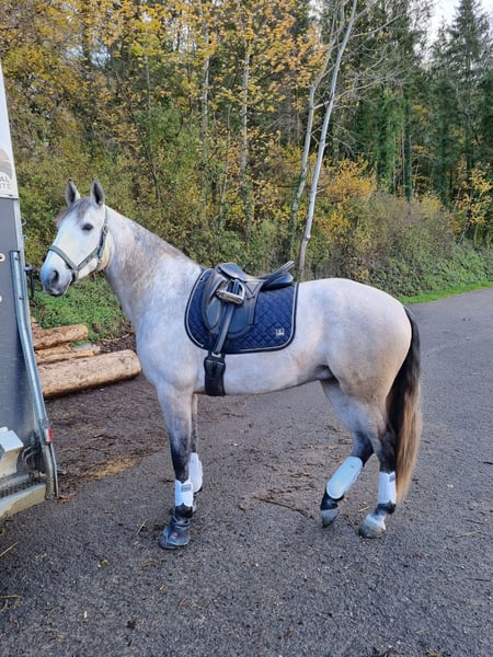 🌿 Zu verkaufen – Oliva JCL, lusitanische Dressurstute mit vollständigen Papieren *geboren 2018* Oliva JCL ist eine wunderschöne lusitanische Stute, die Eleganz, Einsatzbereitschaft und Großzügigkeit im Training vereint. Sie ist gut ausgebildet im Dressurviereck, zeigt sehr schöne Bewegungen, große Flexibilität und einen echten Willen, es richtig zu machen. Ihre Stärken: • Hervorragende Grundlagen im Dressurtraining mit vielversprechendem Entwicklungspotenzial • Ausgeglichenes, stabiles und williges Wesen • Guter Kontakt zum Boden sowie unter dem Sattel • Ideal für einen ernsthaften und motivierten Reiter, der im Dressurtraining Fortschritte machen möchte Empfohlene Reiterfahrung: Fortgeschritten Gesundheitszustand: gesunde, ausgeglichene Stute, sowohl körperlich als auch geistig fit Oliva ist eine zuverlässige Partnerin, bereit, sich an die Seite eines leidenschaftlichen Reiters zu entwickeln.