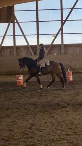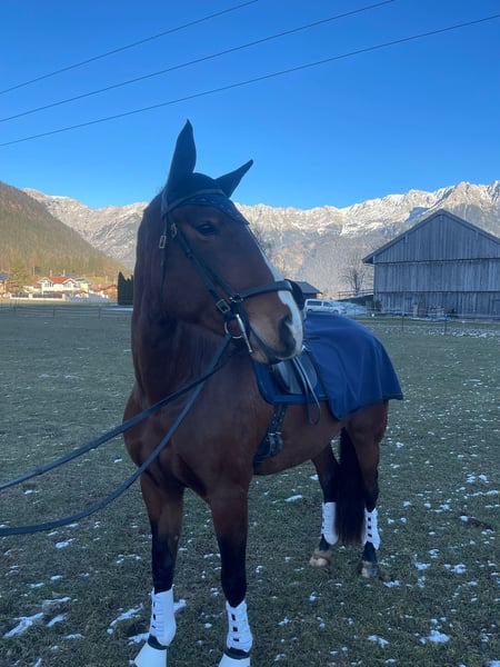 Sprzedam elegancką klacz Lusitano, urodzoną w 2017 roku, w pięknym brązowym odcieniu. O wzroście 164 cm łączy typowe cechy charakterystyczne dla Lusitano z imponującą prezencją. Urodzona w Portugalii, miała możliwość życia na dużych pastwiskach do ukończenia 2 roku życia. Następnie została sprowadzona przeze mnie do Austrii, gdzie zamieszkała w naszym wolnym stajennym. W wieku 4 lat delikatnie i wszechstronnie wytrenowana przeze mnie w klasycznej ujeżdżeniu, rekreacji terenowej i gimnastyce skokowej. Klacz jest również doskonała do dyscypliny Working Equitation, gdzie wykazuje niezwykłe talenty i dużą motywację. Jeździ się na niej dobrze, jest czujna i zawsze pracuje z dużym zaangażowaniem i radością. Dzięki swojej wszechstronnej przydatności i zmotywowanemu temperamentowi, stanowi znakomity wybór zarówno dla ambitnych jeźdźców, jak i doświadczonych miłośników koni. To koń z dużym potencjałem i odrobiną "go" do pracy w ujeżdżeniu, terenie czy Working Equitation.
