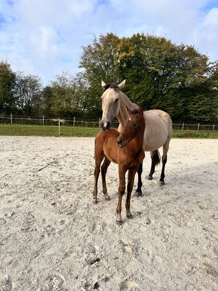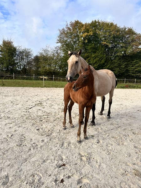 Vanha D'Ardanwen – Lusitano-Stute Mit einem kleinen Herz suche ich für die letzte, äußerst erfolgreiche Nachzucht aus Bela-Dona de Manolo (Unicornio do Retiro) und Gafanhoto (Xeque-Mate) ein neues Zuhause. Sehr menschenbezogenes Fohlen, nicht leicht zu beeindrucken und mit schönen Gängen. Beide Elternteile sind hier vor Ort sichtbar, ebenso ein Vollbruder und ein Halbbruder. Sie kann noch bis Anfang Februar bei der Mutter bleiben, eine längere Betreuung ist nach Absprache möglich. +32 472 240 559 Wir sprechen Niederländisch, Englisch und Französisch.