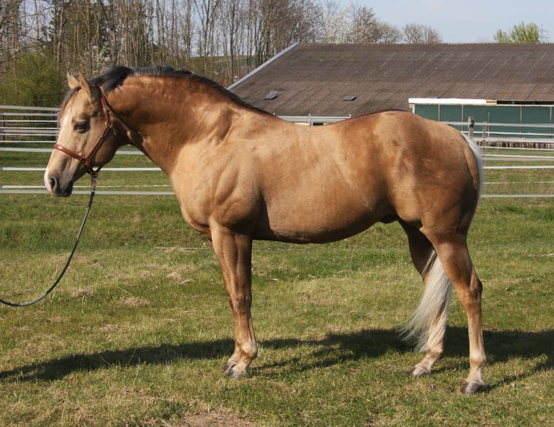 Magic Bo Snapper 2005 Palomino QH Hengst mit silberner Mähne Stockmaß: 1.60 5 Panel n/n IMM n/n OLWS n/n EJSCA n/n Ergebnisse Farbtest: e/e A/a N/Cr nd1/nd2 Von: Magic For Pleasure (Undeniable Hint) Aus der: Bos Black Rose (Bo Upper Deck) Seine limitiere Anzahl an Fohlen hat bereits über 220 AQHA Punkte erreicht! Mehr Ergebnisse seiner Nachkommen: - Superior Horses - Austrian Champions - Futurity Champions - Grand- and Reserve Champions - Year End High Point Horses - Reserve European Champions - Golden Series Winners - and much more AB 2026 AUSSCHLIEßLICH TG SAMEN VERFÜGBAR!! Diese sind gelagert bei Freeze and Breed in Deutschland und werden auch von dorten verschickt. Frühbucher Decktaxe (bis 31. 01. 2026) €650.- Reguläre Decktaxe 2026: €750.- Auch Fremdrassen sind herzlich willkommen! Selbstverständlich gewähren wir auch eine Lebendfohlengarantie! Weitere Infos gerne per Mail: bgb@reitstall-bauer.at oder telefonisch unter 0043 676 / 42 63 575 Zu unseren Deckhengsten zählen: Magic Bo Snapper (Palomino - Pleasure / All Around) Whatta Hit (Red Roan - Pleasure / Halter) Pocos Hollywood Ice (Champagne - Foundation) Lenas Blue Rain (Cremello - Reining / Foundation) Onelittlestepforluna (Buckskin - Reining) Whattan Exciting Hit (Chestnut -Pleasure) Hot Hits Only (Red Roan Overo - Pleasure / All Around)
