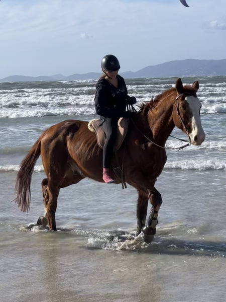 Soy Sara, tengo 15 años y soy alemán. Estoy buscando un caballo en Mallorca y de salto. Yo ha montado de 10 años y también caballos y ponis que no son muy easy. Ha saltado en competición de 1Metro pero tengo mas éxitos en 80cm. En Training ha saltado de 130cm. También quiro ir a paseos y hacer algo tricks creo.