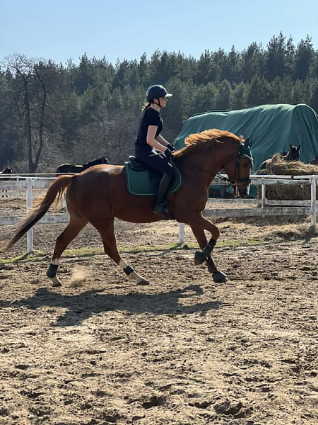 Walach rasy małopolskiej urodzony 08.11.2015 r. po ogierze Justus, od klaczy Dropia. Potomstwo ogiera Justus cechuje się bardzo dobrą użytkowością - daje konie rosłe, odważne, jezdne, dobre ruchowo i skokowo, poprawne eksterierowo. Disney to ambitny walach ze sportowym zacięciem, bardzo dobrze ujeżdżony, z dobrym, obszernym ruchem, naskakany do 100 cm pod amatorem, ma potencjał na więcej. Przeszkody, podmurówki, straszaki nie robią na nim wrażenia, skacze wszystko, zawsze po drugiej stronie przeszkody. Robi ustępowania, łopatki, lotne zmiany nóg. Jest po startach w zawodach skokowych oraz ujeżdżeniowych. Na wyjazdach opanowany. Bezproblemowy w transporcie: w przyczepie i koniowozie. Aktualnie w treningu skokowym. Stoi na wybiegu pod stajnią, na noc sprowadzany do boksu. Regularnie werkowany, szczepiony i odrobaczany. Kuty na przody. W obejściu koń jest wymagający, raczej nie dla dziecka. Potrzebuje osoby, która pewnie czuje się w pracy z ziemi, potrafi stawiać granice i nie boi się koni z charakterem. Sprzedaż tylko w dobre i doświadczone ręce. Cena do negocjacji.