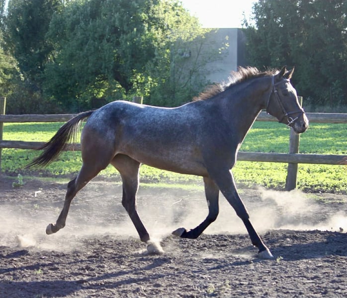 3,5 letnia tarantowata klacz małopolska Czyste RTG JAXA Urodzona: 08.06.2022r. Matka: JAWAJKA sp po DIXAN m Ojciec: AGREST m po DIVISOR xx Aktualnie 157 cm (jeszcze rośnie) codziennie padokowana. Świetny ruch, duże predyspozycje, dobrze skacząca. Klacz pro ludzka, bardzo mądra w pracy. Porusza się w stępie i kłusie pod jeźdźcem (na lonży), nic nie robi na niej większego wrażenia, na nowe rzeczy reaguje z opanowaniem, w trakcie zajeżdżania. Spokojna przy zabiegach pielęgnacyjnych. Regularnie szczepiona, werkowana i odrobaczona. U poprzedniego właściciela chodziła w zaprzęgu. Jeżeli jesteś zainteresowany i widzisz to ogłoszenie - zadzwoń. Nie wykluczone że jesteśmy już na dalszym etapie pracy ! (Cena może wraz z treningiem ulec zmianie). Możliwość pozostawienia w treningu do pełnego zajeżdżenia. Nie ma astmy, nie tka, nie łyka, nigdy nie była kontuzjowana. Świetny charakter, miły, przyjemny konik. Nie posiada żadnych wad, psychicznych czy fizycznych. To konik, który przyniesie wiele radości przyszłemu właścicielowi. 7500 euro do negocjacji Do obejrzenia w Hrubieszowie, Lubelskie. Więcej informacji pod numerem: 530878587 Mail: olaciesielczuk2000@wp.pl Możliwość transportu. W ofercie również: - 3,5 letni skarogniady wałach małopolski, czyste RTG, chwytający za oko, pięknie malowany, świetny charakter i ruch, przyjął jeźdźca, w trakcie zajeżdżania, 159 cm wzrostu, - 2 letni gniady wałach, matka hucułka, ojciec APH, bardzo grzeczna, docelowo około 150 cm, - roczna gniada klaczka, matka hucułka, ojciec APH, bardzo grzeczna, docelowo około 145 cm. W ofercie również inne konie, PROSZĘ O KONTAKT TYLKO OSOBY POWAŻNIE ZAINTERESOWANE.