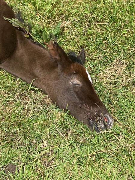 Earl Grey vom Hartungshof, geb.am: 13.06.2025 zeigt sich von Anfang an als "echter Graf", sehr charmant, mit guten Manieren und einer "adeligen Haltung" (sehr guter natürlicher Aufrichtung). Ausgestattet mit sehr guten Bewegungen und einer Gangveranlagung zu Marcha Batida und Marcha Picada wird er in Verbindung mit seiner zu erwartenden Größe ein für einen Marchador recht imposantes Pferd werden und mit seinem liebenswürdigen Charakter ein Freizeitpartner par excellence. Auch Earl Grey hat, wie alle unsere Fohlen das Fohlen ABC gelernt, ist geimpft gegen Influenza, Tetanus und Herpes, ist regelmäßig entwurmt und alle 7 Wochen erfolgt Hufkorrektur. Auch er gehört zur ca. 20-köpfigen Gruppe von Pferden, die zwischen 6 Monaten und 29 Jahren alt sind und in Offenstall, Weidezelten auf dem Paddock und einer großen Weide leben. Und ich muß auch hier sagen, die Anzahl Fotos hält sich sehr in Grenzen, da ich in 2025 sehr oft aus gesundheitlichen Gründen nicht in der Lage war zu fotografieren, insbesondere ab Mitte Juli bis in den November hinein.