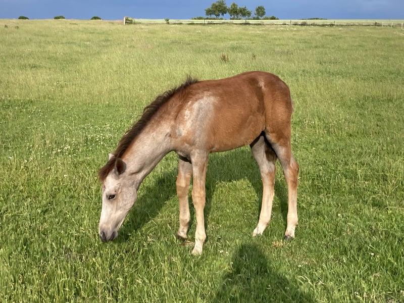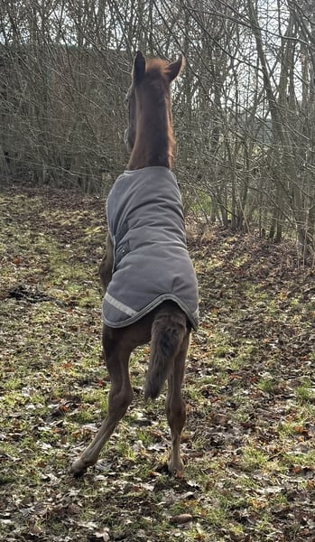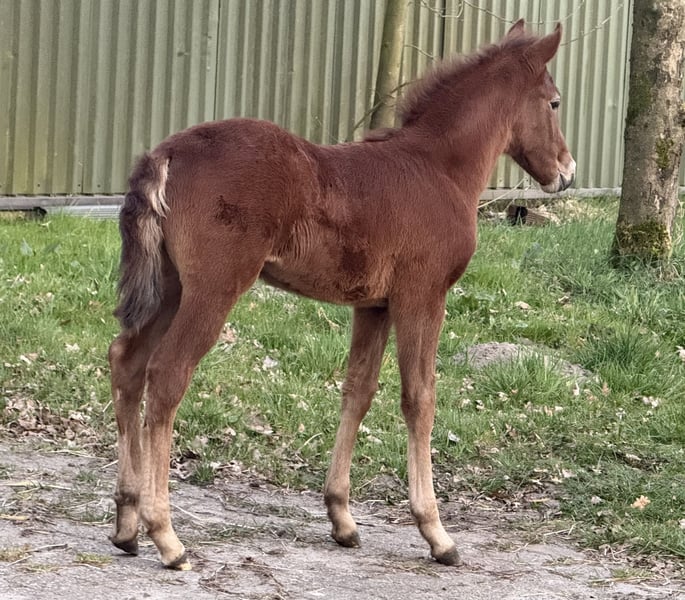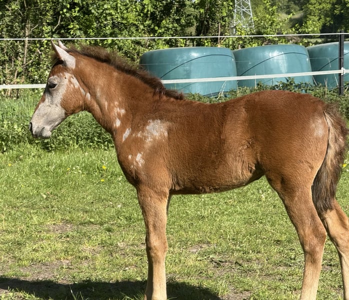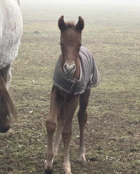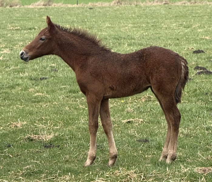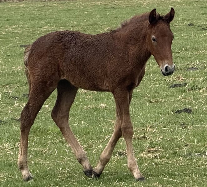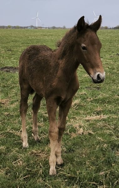 Finja vom Hartungshof geb.am: 09.03.2025 ist eine besonders feine, hübsche, lebensfrohe und neugierige kleine Dame. Sie ist das letzte Fohlen unserer tollen Fada, die leider im Herbst 2025 im Alter von 21 Jahren einen Unfall erlitt und deshalb eingeschläfert werden musste. Finja ist schon sehr selbständig, zeigt sehr gute Bewegungen, und wie alle ihre Geschwister, eine für einen Marchador erstklassige Galoppade. Ihre Gangveranlagung ist die Marcha Batida und vielleicht auch die Marcha Picada Das ganze gepaart mit einem sensiblen und feinem Wesen. Sie beherrscht das Fohlen ABC, ist geimpft gegen Influenza, Tetanus und Herpes, regelmäßig entwurmt und alle 7 Wochen erfolgte Hufkorrektur. Wenn sie Ihren Vollgeschwistern nacheifert, wird sie bei korrektem und gutem Fundament für einen Marchador recht groß und im Umgang sehr unkompliziert. Auch von ihr existieren auf Grund meiner eigenen gesundheitlichen Probleme relativ wenige Bilder.