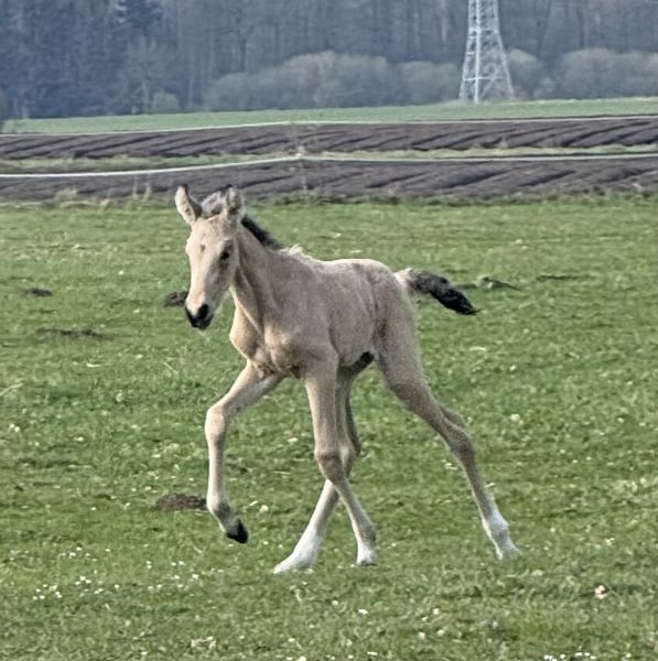 Gwenda von Hartungshof geb.am: 16.04.2025 ist eine wunderhübsche, gangstarke (Marcha Batida und Marcha Picada) Mangalarga Marchador Jungstute. Sie ist sehr Menschen bezogen und zeigte sich kooperativ beim lernen des Fohlen ABCs (halftern lassen, um Mama rundum geführt werden, Hufe geben). Inzwischen abgesetzt lebt sie in einer fast 20-köpfigen, gemischten Gruppe zusammen mit anderen Fohlen, Jährlingen, 2-jährigen und erwachsenen Pferden im Offenstall, auf dem Paddock und auf einer großen Weide. Gwenda wurde bereits 2 x gegen Tetanus und Influenza und 1 x gegen Herpes geimpft, außerdem wurde sie regelmäßig entwurmt und auch Hufbearbeitung ist kein Fremdwort für sie. Dass es nicht besonders viele Bilder und nur ein Video von ihr gibt, liegt an meinem eigenen gesundheitlichen Zustand in 2025.