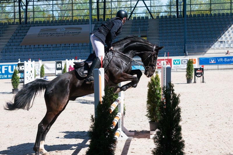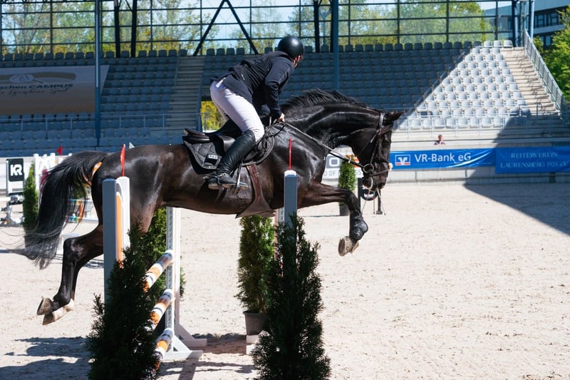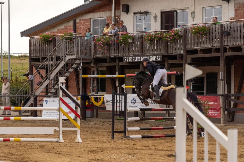 Z ciężkim sercem sprzedajemy naszego kochanego wałacha. Jest z nami od 1,5 roku i jeździł na nim nasz 14-letni syn w konkursach skoków na poziomie klasy A *-L. Na Norderney Beach Classics zapewnił nam zwycięstwo w konkursie A**, a oboje zdobyli tytuł mistrza powiatu na 2025 rok i mieli okazję startować na Aachen Young Stars. Z jego poprzednim właścicielem odniósł zwycięstwa aż do poziomu M**. Można z nim jeździć zarówno solo, jak i w grupie na teren. Spędziliśmy z nim także wakacje nad morzem. W ujeżdżeniu jest przyjemny w prowadzeniu i daje dużą satysfakcję. Skacze bez problemu przez zmiany. Opisalibyśmy go jako wszechstronnie użytecznego konia. Bez problemu ciągnie przyczepę i wsiada samodzielnie. Jest w pełni podkuty i nie sprawia kłopotów także w tej kwestii. U nas mieszka w paddock boxie i w ciągu dnia w mieszanej stadzie, co funkcjonuje bez zarzutu. Uważamy go za konia o wyższej pozycji w hierarchii stada. Posiada ważny przegląd techniczny z sierpnia 2024 roku, bez poważnych usterek, w tym badanie kręgosłupa. Niestety od czasu bycia źrebakiem cierpi na kopanie, co jednak go nie ogranicza i nie ma skłonności do kolki. Posiada ubezpieczenie na operacje, które można przejąć w razie potrzeby. Życzylibyśmy mu dobrego domu. Aby zapobiec nadużyciom w turystyce jeździeckiej, za jazdę próbną pobieramy 30 euro, które zostaną odliczone od ceny zakupu. Sprzedający nie akceptują pośredników!