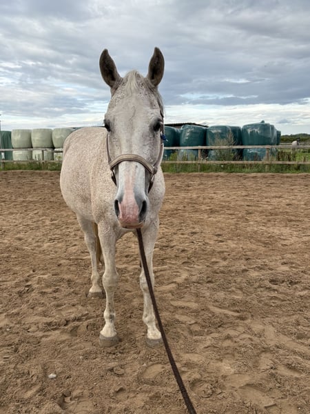 Bando has been with us in the riding school for the past four years, and we are now retiring him to a well-deserved life as a school horse. He is approximately 1.65 meters tall and 16 years old. During his time with us, he has been ridden by absolute beginners as well as more advanced riders, always remaining gentle and patient. He is capable of lateral movements and responds delicately to aids when his rider is ready. Bando is a very attentive horse, which sometimes makes him a bit watchful, but he always keeps his nerves in check. When he first joined our riding school, he was diagnosed with bilateral spavin. Due to a period of pain, Bando has only recently been able to participate in lessons again. After his long break, he will need some time to get back into work. We wish for Bando to find someone who will enjoy taking him on long, straight rides, where he can stretch out comfortably. His canter under saddle should also become smooth and effortless again. Additionally, he has a mild heart valve insufficiency, which does not affect his performance. This has been confirmed by our veterinarian. We absolutely do not see Bando as a mere companion horse. Despite his physical limitations, he is a horse that still wants to be engaged and challenged. He loves riding out and also enjoys groundwork sessions very much. He is definitely still too fit to be considered just a companion horse. We see him more as a leisure partner with whom you can still experience many adventures. We also think he would make a great family horse, as he loves attention and is familiar with children. If you are interested in getting to know our Bando, please feel free to contact us! For us, the place comes before the price!