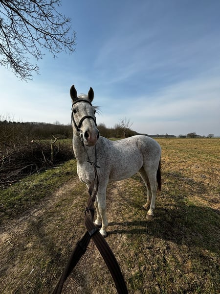 Bando has been part of our riding school for 4 years, and we are now sending him into his well-deserved retirement as a school horse. Bando is approximately 1.65m tall and 16 years old. He has been ridden by both absolute beginners and advanced students, and he has always been kind. He knows lateral movements and can be ridden softly off the aids when his rider is ready. He is a very attentive horse, which makes him somewhat curious at times, but he always keeps his nerves. When he joined our riding school, he was diagnosed with bilateral arthritis. Currently, he is in a pain phase, which is why he is only being moved on the ground at a walk and trot. According to the osteopath, he will be rideable again after this phase. Long trail rides, where he can move straight ahead, would be best for him. Galloping should also work without any issues with him. Additionally, he has a slight heart valve insufficiency, which does not affect him. We have had this confirmed by a veterinarian. We do not want to present Bando as just a companion horse. He is a horse that wants to be engaged and challenged despite his physical limitations. He loves going on trail rides, and he also enjoys groundwork very much. He is definitely still too fit to be a mere companion. We would rather sell him as a leisure buddy with whom you can still experience various activities. We can also envision him as a family horse, as he loves attention and is familiar with children. If you are interested in getting to know our Bando, please feel free to reach out! For us, the right home is more important than the price!
