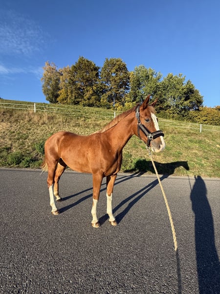With a heavy heart, I am seeking a new home for this sweet boy, only if everything aligns, due to personal reasons. This gelding was born in December 2023 and is truly a treasure both in appearance and character! He is healthy and has no vices. He enjoys spending time with people, allows himself to be groomed everywhere, and gives all four hooves. He is familiar with the farrier and veterinarian, knows trailer loading, and is easily washed from head to toe. He has already learned to handle various riding accessories in a playful manner and follows along on walks like a little lapdog. Since his first days, he has been living in an open stable, which has made him very resilient, and he is definitely herd-safe. A future as a leisure horse, a well-behaved family member, or even as a sport horse in any discipline is still possible for him. If interested, please feel free to contact me ☺️