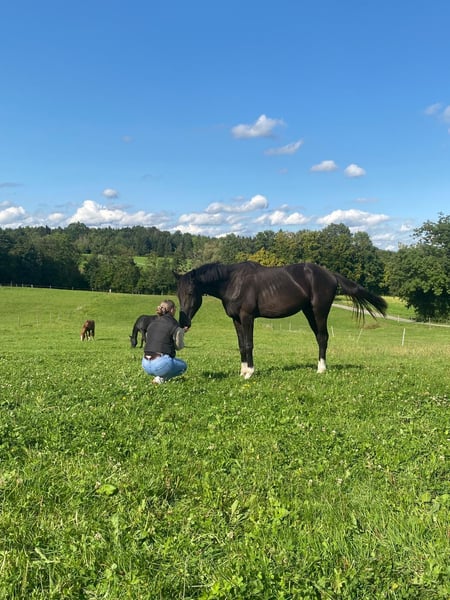 Van Tastico ist jetzt 2 1/2 Jahre alt und frisch von der Aufzucht zurück. Wir haben ihn direkt nach der Geburt gekauft. Sein Vater ist Van Austria, sein Großvater mütterlicherseits ist Ahonen, 2005 geboren und auf Rimondo anzusehen. Dressur bis M platziert und noch aktiv im Springen mit seinen 20 Jahren. Seine Grundgangarten sind toll, er ist kein Würschtl und wird im Viereck auch zeigen können was er hat. Auf seinem Konto sind schon mehrere Vorstrafen wegen unaushaltbarer Schnuckeligkeit und zu freundlicher Art vermerkt. Van Tastico hat keinen Abstammungsnachweis weil Ahonen kein gekörter Hengst ist. Wir haben ihn aber trotzdem aufgrund der Abstammung gekauft. Er ist brav im Umgang, war mit zwei Freunden in der Aufzucht und ist derzeit in einem Offenstall zuhause, wo er noch etwas fertig wachsen darf. Wir haben uns in allem sehr bemüht seit seiner Geburt und er ist wirklich ein schicker schwarzer Kerl mit 4 weißen Beinchen und einem tollen und friedfertigen Charakter der noch nichts schlechtes erlebt hat. Da wir aber noch zwei weitere Pferde haben und drei einfach zu viel sind für einen Hintern der Vollzeit arbeitet, trennen wir uns von ihm, weil er sein ganzes Leben noch vor sich hat und es Menschen gibt, die von Beginn an alles selbst machen möchten. Natürlich besteht auch die Möglichkeit, ihn noch hier zu lassen damit er im Frühjahr die ersten Erfahrungen mit Sattel und Reiter bei uns macht. Bei Interesse einfach melden.