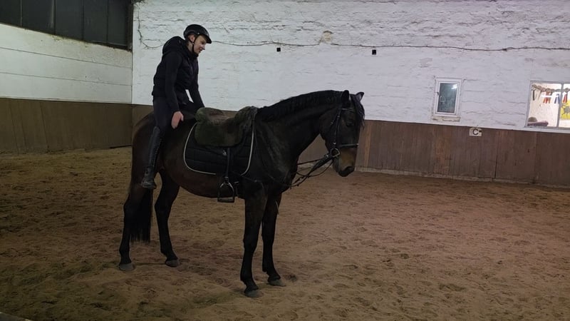 Eddy ist ein liebenswerter Freizeitkumpel der durch seine zugewandte und süße Art schon am Putzplatz zu begeistern weiß. Auch beim Reiten ist er anständig und unglaublich cool. Eddy lässt sich leicht an den Zügel stellen, hat ansprechende Bewegungen und zeigt auch Freude und Talent am Sprung. Er lässt sich nett dressurmäßig reiten, absolviert erste kleine Sprünge unter dem Reiter und geht absolut gern und unerschrocken ins Gelände. Sowohl in der Gruppe als auch allein. Bei weiterer Förderung wäre er auch für den Turniersport geeignet. Er ist übrigens so entspannt, dass er auf sich turnen lässt. Auch an Bodenarbeit und kleinen Kunststückchen hat er sicher Spaß. Er ist recht neugierig und ein wenig verspielt. Eddy steht hier tagsüber mit anderen Wallachen auf dem Paddock und nachts in der Box. Aber auch den reinen Weidegang und Offenstallhaltung kennt er. Im Umgang ist er ein Schatz. Duschen, Hufschmied, Verladen etc alles kein Problem. Tolle Gelegenheit für jemanden der sich sein zukünftiges Traumpferd noch selbst weiter formen möchte. Fast 4j Wb Wallach, 1.64m Klinische Aku vorhanden Video: https://youtu.be/qH6W38tlBkA?si=8w2eZvt6WqLIQqtG „Videos, Trainingsausschnitte und weitere Eindrücke zu unseren Verkaufspferden finden Sie auch auf Instagram: [maresi_lange]. Dort erhalten Sie zusätzliche Informationen und Einblicke in die Entwicklung der Pferde. Videos, training highlights and further impressions of our sales horses can also be found on Instagram: [maresi_lange]. There you will get additional insights and a closer look at the horses’ development.“ Weitere Pferde auf meiner Homepage MaresiLange.de oder auf Anfrage. Die Beschreibung des Pferdes beruht auf subjektiven Eindrücken und Erfahrungen unsererseits und ist keine Beschaffenheitsvereinbarung und Zusicherung von Eigenschaften. Probereiten erfolgt auf eigene Gefahr. Verkauf erfolgt im Auftrag. Für das Vorstellen/ Probereiten des Pferdes erlauben wir uns eine Aufwandsentschädigung in Höhe von 30 Euro zu berechnen. Diese wird natürlich bei Kauf des Pferdes verrechnet.