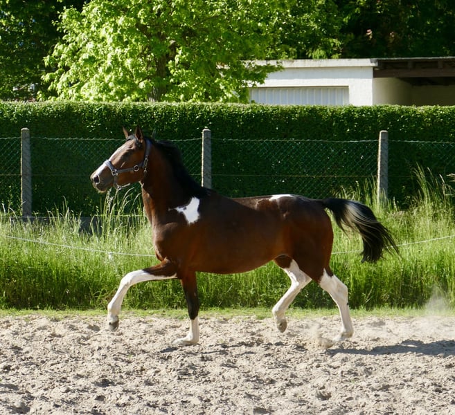 Imperio A , 4j. Wallach von Insider x Chaman , ein Traum in bunt! Bewegungspotential vom feinsten, abstammungsgemäß hochinteressant für Vielseitigkeit und Springsport