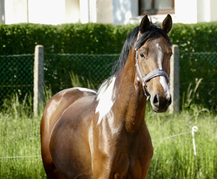 Imperio A, 4-year-old gelding by Insider out of Chaman, a true colorful dream! Excellent movement potential, with a highly interesting pedigree for eventing and show jumping.