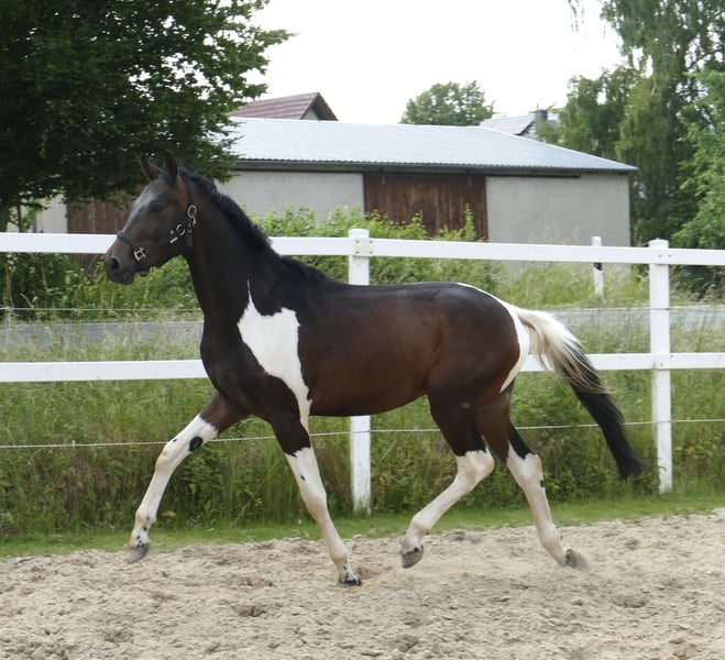 Insider's Glückspilz, un potro de 3 años, hijo de Insider y Cassone, impresiona por su calidad de movimiento y su carácter maravilloso. Es un caballo impresionante con una estatura final de aproximadamente 1,75 m. Su linaje es muy interesante para disciplinas de concurso completo y salto, lo que lo hace ideal para la doma y la competición en salto.