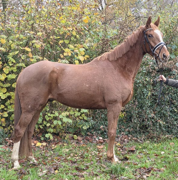 Manhattan is a currently 16.1 hh Irish Sport Horse. He is suitable for ambitious riders. Manhattan has potential in dressage, show jumping, and eventing. His gaits are good, he is diligent and very easy to ride. For his age, he already performs many movements with confidence. He is familiar with work in the riding arena, the indoor school, and has also been ridden in the terrain in his home country, which is always a plus. :-) Manhattan is also a true sweetheart in handling. A recent veterinary examination is available. For more information, we look forward to your call at: 0177/2721831.