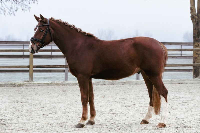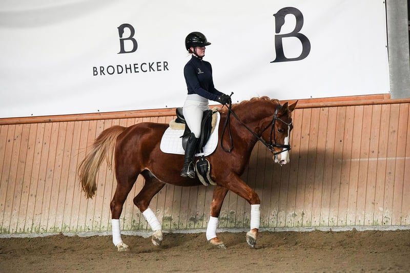 Ernie impresses with his good rideability and clear mind. Despite his young age, he already performs very well and confidently in school exercises with young riders. However, he has developed some minor quirks in handling and grooming. When being ridden, he is very well-behaved and eager to learn. As he is still in development, we believe he would be better suited to a smaller riding operation or a private owner with sufficient horse experience. For further questions, please feel free to contact us by phone at +49 172 8733686.