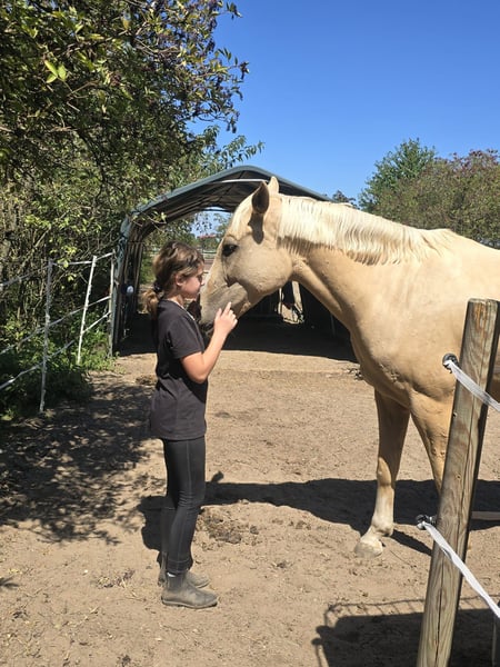 Hermoso caballo palomino de casco a la venta