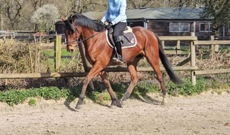 Moon ist ein ca. 168 cm großer Wallach, dieses charmante Kerlchen ist ein toller Allrounder. Er eignet sich für: Dressur, Springen, Vielseitigkeit und auch einfach nur für den Freizeitbereich. Moon verfügt über 3 gute GGA und er zeigt sich sehr leichtrittig. Ideales Damen und Juniorenpferd. Moon ist durch und durch eine coole Socke. Er zeigt sich unterm Sattel immer zuverlässig und unerschrocken auch in neuen Umgebungen. Moon ist im März 6 Jahre alt geworden, er steht noch in der Entwicklung und benötigt noch etwas Muckis. Da arbeiten wir täglich dran. :-) Eine aktuelle tierärztliche Untersuchung liegt bereits vor. Für mehr Infos, freuen wir uns auf Anrufe unter: 0177/2721831. Bei Interesse an Videos, schreiben Sie uns bitte ausschließlich über WhatsApp an.