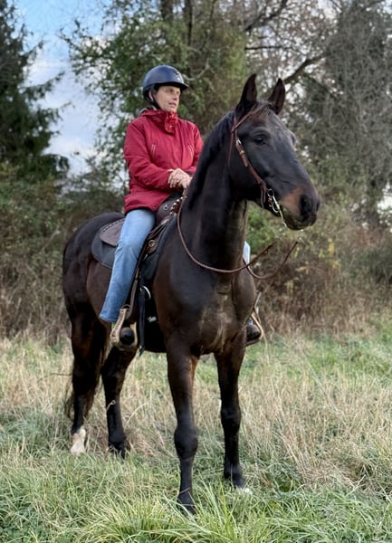 ONLINE-AUKTION Bieten Sie jetzt auf www.PlatinumEquineAuction.com Startgebot: 3.500 US-Dollar Auktionsende: 21. Dezember 2025 Benötigen Sie einen neuen Sattel? Schauen Sie bei White Rock Saddles auf unserer Website oder Facebook vorbei. WAF Black Tie Affair ist ein außergewöhnlich talentierter junger Wallach auf der Suche nach seinem nächsten Partner. Unglaublich liebenswert und talentiert, ist dieser 5-jährige Hengst 1,68 m groß, im Dutch Harness Horse-Register eingetragen und zudem für das KPWN-Register zugelassen. Black Tie hat sich in Springen und Vielseitigkeit hervorgetan, war im Nordosten der USA unterwegs und hat in jeder Disziplin, in der er angetreten ist, Platzierungen erzielt. Derzeit springt er in der Klasse bis 1 m bei Springreitern und ist im Anfänger-Vielseitigkeitssport aktiv. Black Tie zeigt hervorragende Reflexe, beeindruckendes Springvermögen, die passende Vorsicht und einen kämpferischen Geist. Er geht jede Situation mit großem Bewusstsein und starker Arbeitsmoral an. Als Publikumsliebling beweist er eine bemerkenswerte Bereitschaft zu gefallen und zu leisten. Er lässt sich verladen, im Anhänger transportieren, anbinden, baden, beschneiden, lungieren und ist beim Schmied sowie Tierarzt unkompliziert. Er scharrt nicht im Anhänger, tritt nicht und wartet geduldig auf seine Prüfung, auch wenn er alleine ist. Er reist gut und bleibt nachts ruhig in der Box, auch wenn er außer Haus steht. Neben seinen Erfolgen im Springen und der Vielseitigkeit ist Black Tie auch auf dem Trail sehr zuverlässig. Er ist nicht schreckhaft, überquert Brücken, Baumstämme und Wasser, hat keine Angst vor Hunden, Autos oder Fahrrädern. Er reitet alleine sowie in der Gruppe. Sein Vater ist der führende DHH-Hengst Hightanium, was ihm das Pedigree und das Talent verleiht, in jede Richtung zu gehen. Ideal für einen ambitionierten Amateur, der ein junges Pferd mit vielseitigen Perspektiven sucht. Standort: Lebanon, NJ. Für weitere Informationen wenden Sie sich bitte an Hannah Zorn unter 917-821-4140.