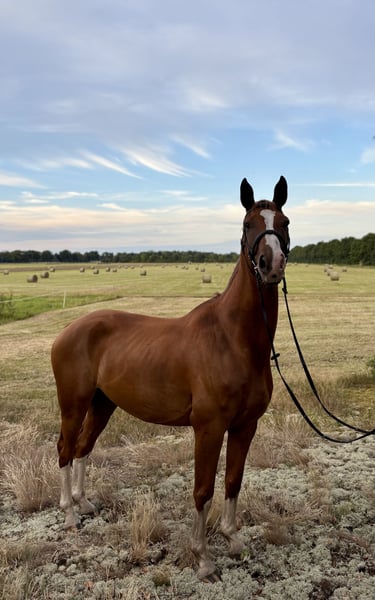 For sale is this chestnut gelding. He is: • 9 years old • approximately 1.70 m tall • barefoot • living in a paddock with a mare and a gelding, easily integrates • farrier and loading friendly • regularly visits the veterinarian, dentist, and osteopath • familiar with dogs, cows, children, tractors, etc. • knows saddle and bridle and has been ridden in all three gaits (including trails) • easy to handle even for non-riders • has a minor issue • optimal for relaxed rides in the arena or trail rides/walks, groundwork, and free work ! Not suitable for jumping! He is extremely sociable and always kind. A trial ride is currently not possible as he is in training after a break. He will be sold with an equine passport and, if desired, with equipment.
