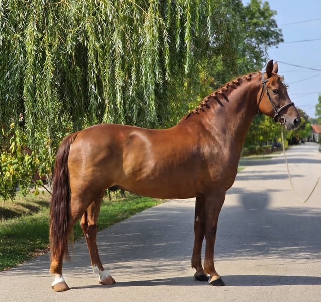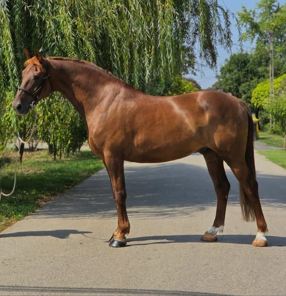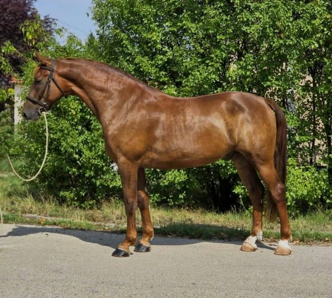 Mokka – Stallion, 9 anni, alto 1,65 m, calmo ed esperto Mokka è un elegante stallone che con il suo temperamento equilibrato instaura immediatamente fiducia. È facile da gestire, molto socievole e si impegna volentieri nel lavoro, mantenendo sempre rispetto e attenzione. Sotto la sella si presenta con movimenti piacevoli e regolari, risponde delicatamente alle redini e lavora in tutte e tre le andature in modo affidabile. Che sia in maneggio o in campagna, rimane calmo e affidabile. Anche nel traffico stradale mantiene la calma, trasmettendo sicurezza al suo cavaliere. È già abbastanza facile da saltare e dimostra grande talento e potenziale per migliorare ulteriormente. Nel quotidiano si comporta in modo semplice: spazzolare, ferratura o sellettatura sono per lui senza problemi. Si relaziona bene con gli altri cavalli, si integra facilmente in una mandria, senza essere dominante o insicuro. Anche al momento del carico e in nuovi ambienti si comporta in modo collaborativo. Dal punto di vista sanitario, è in ottima forma: possiede un passaporto equino, riceve regolarmente vaccinazioni e deworming, e ha recenti analisi del sangue. Mokka è un vero compagno per la vita di tutti i giorni – sicuro, calmo e affettuoso, su cui si può sempre contare. Per interessamenti, contattare tramite messaggio privato o WhatsApp 📱✉️: +49 176 40177894