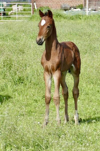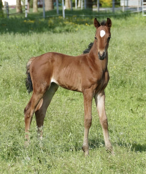 Mit Chris A haben wir hier ein sehr sportliches Hengstfohlen von Cadiz x Insider x Magic Memphis. Abstammungsmäßig hochinteressant für Vielseitigkeit und Springsport.