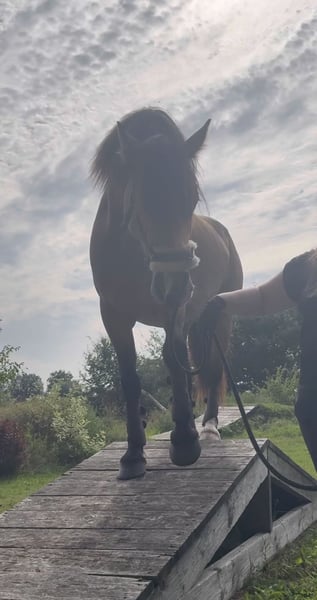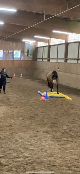 Cubi (Cubilano) Geboren: Juni 2018 | Rasse: Warmblut-Tinker-Mix | Stockmaß: ca. 164 cm | Sonderfarbe: Buckskin * Sensibles Pferd, dadurch kein Anfängerpferd * Kein Gewichtsträger * Kein Notverkauf | Händler, Reitschulen oder Reittherapie kommen nicht infrage * Regelmäßig geimpft (Influenza, Tetanus), entwurmt, zahnärztlich und physiotherapeutisch betreut * Vom Boden vorbereitet zum Weiter-Ausbilden Cubi habe ich als Absetzer gekauft und seitdem mit viel Herz und Geduld begleitet. Er ist ein feinfühliges Pferd, das mit Ruhe und Fairness, ohne zu viel Druck, sehr motiviert mitarbeitet und für vieles offen ist. Besonders gut vorstellen kann ich ihn mir in der klassischen Reitweise. Ich suche einen Menschen mit Geduld und feinem Händchen, der Freude an einem partnerschaftlichen Miteinander hat und seine feinen Signale wahrnimmt. Wichtig ist mir ein beständiges Zuhause, in dem er respektvoll gefördert wird und weiter wachsen darf. >> Ausbildung Cubi ist unverbraucht und bisher schonend vom Boden ausgebildet. Er kennt klassische Handarbeit, Fahren vom Boden, Doppellonge, Ansätze in der Zirzensik und trägt den Reiter mit Sattel in Schritt und Trab zuverlässig an der Longe. Auch in brenzligen Situationen ist Cubi immer händelbar. Mit seiner Vertrauensperson ist er im Gelände unerschrocken und fährt auch anständig mit dem Anhänger. >> Haltung Optimalerweise wünsche ich mir für Cubi ein neues Zuhause im Offenstall oder Trail mit Weidegang im Sommer. Er kennt auch Boxenhaltung über Nacht und verschiedene Herdenkonstellationen. Er springt nicht auf und ist nicht hengstig, fühlt sich aber in Wallachherden erfahrungsgemäß am wohlsten. >> Für Interessenten Ein mehrfaches Kennenlernen ist ausdrücklich erwünscht. Bodenarbeit und Vorstellen unter dem Reiter sind beim ersten Treffen möglich, ein persönliches Probereiten erst nach weiteren Treffen. Auch ein Ausflug mit dem Anhänger in den Reitverein ist auf Wunsch denkbar. Bei Interesse kann hochwertige Ausrüstung, wie sein neuer Sommersattel, zusätzlich erworben werden. In einem Radius von ca. 2 Stunden Autofahrt um Hamburg kann er von mir gebracht werden. Damit ich mir vorab ein gutes Bild machen kann, schreibt mir bitte direkt in eurer Anfrage: * Wer seid ihr und welche Pferdeerfahrung habt ihr? * Was wäre Cubis Aufgabe und was ist euch im Umgang besonders wichtig? * Wie sieht sein zukünftiges Zuhause aus? Anfragen ohne diese Infos oder mit „Was letzte Preis“ beantworte ich nicht.