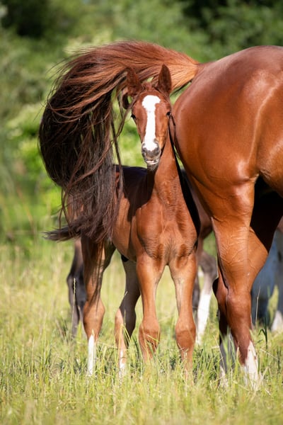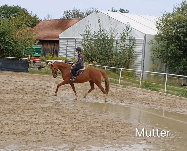 Sehr sportlicher Fuchshengst aus 2025 mit Blesse und zwei weißen Hinterbeinen sucht ab Ende Oktober 2025 ein liebevolles neues zu Hause. Ein Eigenprodukt aus unserer Coupe de Couer x Balou du Rouet x L.A. Stute und unserem eigenen, selbst gezogenen Deckhengst Dime lo que Ves JV (Darcosall de Revel x Calico x Lad). An dem kleinen Mann hängt viel Herzblut und er ist eine wundervolle Mischung aus beiden Elternteilen, welche selbstverständlich am Hof live besichtigt werden können. Der Vater Dime lo que Ves JV ist von uns selbst gezogen, ausgebildet und am Turnier altersgemäß aktuell bis Springpferde M* hoch platziert, hat Junge Pferde M* gewonnen und M** platziert. Ebenso wird er von Amateuren daheim mitgeritten. Mutter und Geschwister können live am Hof besichtigt werden, Geschwister bis 1.40 m erfolgreich und lassen sich wunderbar von Amateuren reiten. Aus der Linie der Mutterstute gehen Springer bis 1.45 m international hervor. "Drago" ist ein sehr typvolles und blutgeprägtes Hengstfohlen mit viel Ausstrahlung in wunderschöner leuchtender Fuchsjacke mit jetzt schon erkennbaren super berauf Galopp, welches sicherlich sowohl im Spring- als auch VS-Sport ideal aufgehoben wäre. Leider leider im falschen Geschlecht gelandet... der kleine Mann steht nur zum Verkauf, weil wir uns mit der Hengstaufzucht bei uns am Hof schwer tun. Wäre er ein Stutfohlen geworden, wäre er nicht verkäuflich. Deswegen nur in wertschätzende Hände abzugeben... Unsere Fohlen wachsen selbstverständlich artgerecht auf, sind jeden Tag "in der Hand" und werden von uns als kleine private Züchter für den Eigengebrauch mit viel Liebe und Hingabe großgezogen. Es ist das erste Mal überhaupt, dass wir uns von einem Fohlen trennen würden... Abstammung: Dime lo que Ves JV x Coupe de Couer x Balou du Rouet x L.A. Geboren am 03.05.2025 zu erwartendes Endmaß um die 1.70 m ca. Prämienfohlen Abgabe ab Ende Oktober 2025 Preis: 4.800 € Kontaktaufnahme bevorzugt bitte über 0175/8614565, gerne WhatsApp. Siehe auch wegen notwendiger Bestandsreduktion andere Anzeigen.
