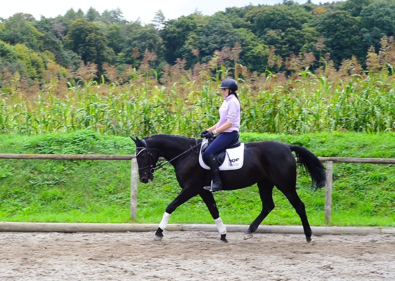 Sehr ansprechende Rappstute mit 3 netten GGA. Mit viel Erfahrung in der Kutsche zweispännig gefahren, sowie für Freizeit- und Geländeausritte. Vom Charakter her passend für viele Ansprüche. Tolle Allrounderin auch herzensgut im Umgang. Der ideale Partnerin für nicht ganz so große Reiter. Eventuell mit Zubehör zu verkaufen.