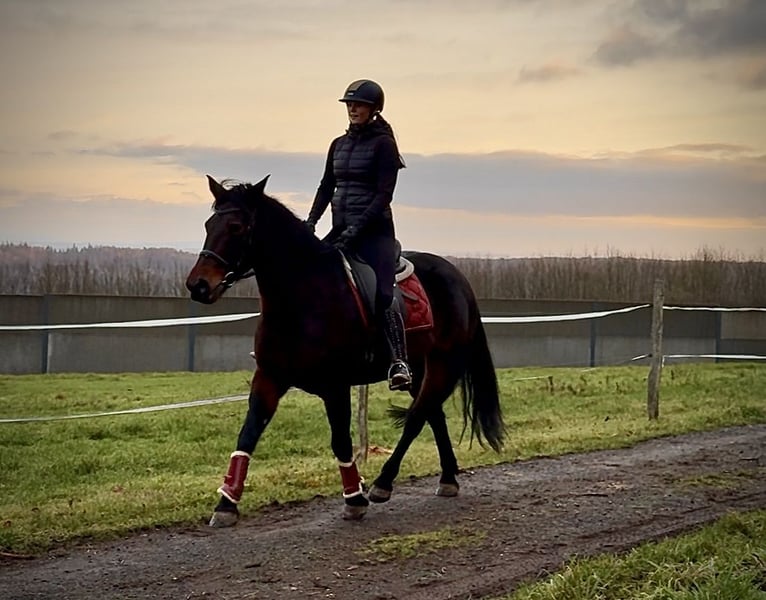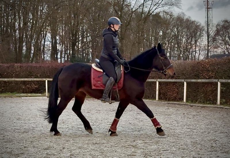 Name: Ragwell Breed: Crossbreed Gender: Mare Date of Birth: January 1, 2011 Age: 14 years Height: 15.5 hh Color: Dark Brown Pedigree: Unknown Temperament: People-oriented, curious, intelligent, brave, patient Training/Suitability: ridden, leisure riding, show jumping, trail riding, therapy horse, school horse Terrain Experience: calm under pressure, reliable, fearless, confident both alone and in a group Health: dewormed, vaccinated, barefoot, eczema-free, teeth checked, osteopathically treated Stabling: Paddock box, open stable Special Features: farrier and loading confident, herd-compatible Please note that the qualities listed are based on our personal assessment and do not constitute guaranteed traits. Price: €5,300 (gross) Have we piqued your interest? To give you a better impression of Ragwell, we are happy to send you a riding video. Of course, we are available for a detailed description of the horse, personal consultation, and to answer all your questions by phone. Feel free to contact us anytime via WhatsApp or call us at: +49 151 19487595 Our phone hours are daily from 7:00 AM to 1:30 PM and again from 8:00 PM. We look forward to hearing from you! A clinical or radiological pre-purchase examination can be arranged with your veterinarian. Ragwell can be safely and comfortably delivered to your new home. We handle all preparations and transportation to ensure your new horse arrives stress-free, well cared for, insured, and in good health. Currently, we offer a carefully selected variety of horses for sale. With us, you are sure to find your dream horse. Visit our website at www.marvinsroyalhorses.de for more information. Dear customers, we are happy to introduce you to our horses and offer grooming, tacking, lunging, ground work, and trial riding in the riding hall, on the arena, or in the field to help you get to know your new family member better. The fee is €40 per horse, with each additional horse €30, and will be refunded upon purchase. Our address: Ferdinand Street 50 53577 Neustadt Wied Google Maps: marvinsroyalhorses