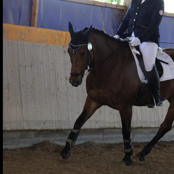Freizeitpartnerin mit solider Ausbildung Wir verkaufen unsere Stute. Wir suchen für Sie ein schönes zuhause (keine Reitschule). Weit unter Wert aufgrund einer alten Verletzung. Sie sollte nicht Springen. Bei uns wird die Stute jeden Tag geritten. • gut dressurmäßig ausgebildet • kennt Ausritte,ist longiert,Schmiedefromm • für Erwachsene geeignet, auch für Anfänger, wenn regelmäßiger Unterricht sowie unterstützendes Mitreiten durch erfahrene Reiter gewährleistet ist • vom Charakter her eher gemütlich, dabei trotzdem fein an den Hilfen, trotz höherem alter ist sie keine „Schlaftablette“ Ein ideales Pferd für jemanden, der einen Partner für Freizeit, Dressurarbeit sucht. Bei Interesse freue ich mich über ein Telefonat: 01520 4547603 Probereiten inklusive vorreiten ist möglich (20€)