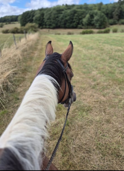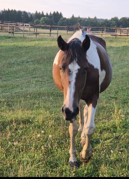 Auf diesem Weg sucht diese Scheck Stute ein liebevolles Zuhause. Sie ist 18 Jahre alt und ein Stockmaß von ca. 163 cm. Sie ist für Anfänger und Wiedereinsteiger geeignet.