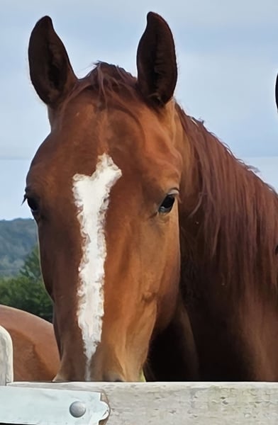 Large-framed chestnut mare with excellent pedigree: Coros by Cornet Obolensky out of a For Pleasure mare. The mare is unbroken.