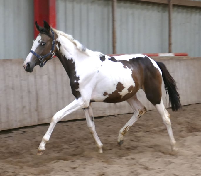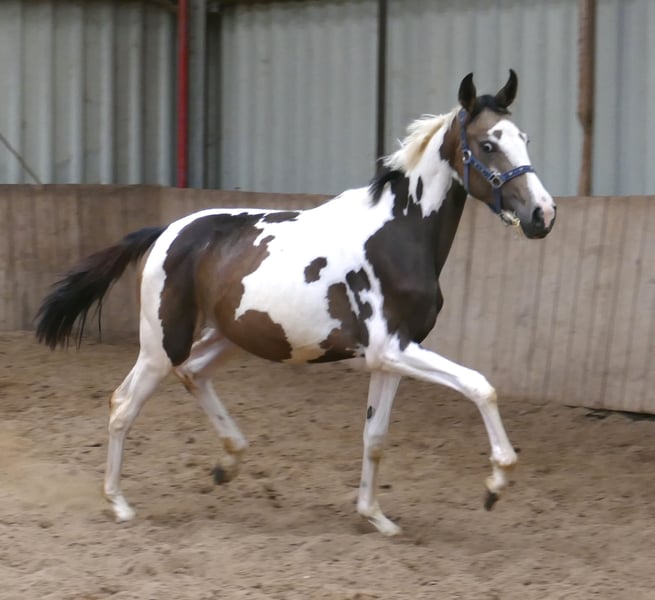 Insider-dochter Ivory's Grey A uit onze Anna van Mistral x Almhirt Tynsky. Een indrukwekkend jong paard met een eersteklas uitstraling, geweldige houding en uitstekende bewegingskwaliteit! Een exquisite jaarling merrie met maar liefst twee bijzondere kleuren, ..ze draagt zowel het Tobianogen als het Cremegen. Deze ongelooflijk sportieve jonge dame is afstammingsgewijs zeer interessant voor de eventing en springsport!