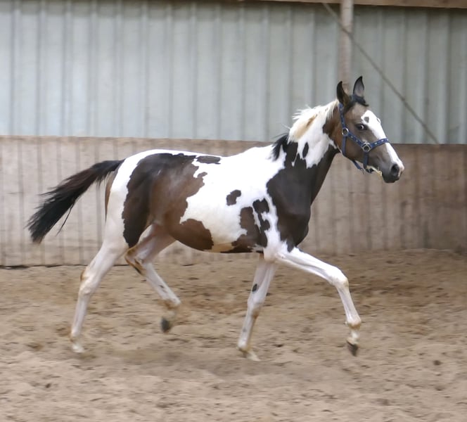 Insider córka Ivory's Grey A z naszej Anny von Mistral x Almhirt Tynsky. Imponujący młody koń o doskonałym wyglądzie, wspaniałej postawie i znakomitej jakości ruchu! Ekskluzywna klacz roczna z dwoma kolorami specjalnymi, ..nosi zarówno gen tobiano, jak i gen kremowy. Ta niesamowicie sportowa młoda dama ma wysokie zainteresowanie pochodzeniem w zakresie wszechstronności i skoków!