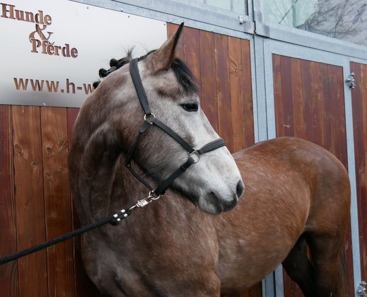 Chelentana is a suitable mare for beginners and versatile across all riding disciplines! She performs well in dressage in the indoor arena and on the outdoor riding area. She is calm and well-behaved in the field, and she jumps very nicely for her age under saddle. I can easily see her as a school horse. She is gentle in handling and gets along well with other horses. For more information, please contact: 0176 62495567