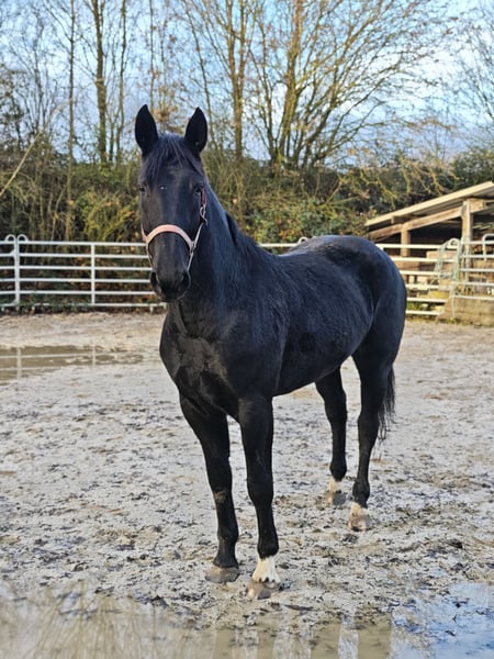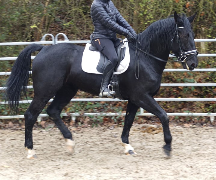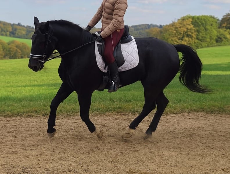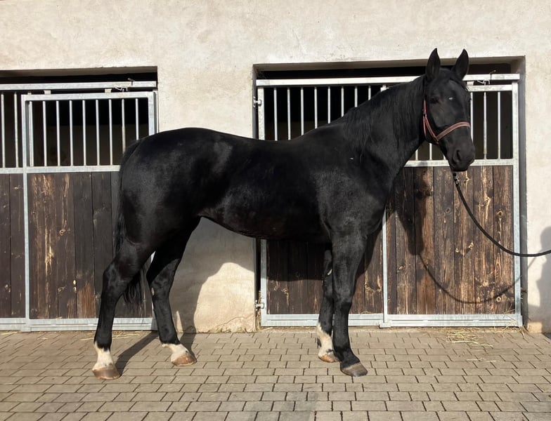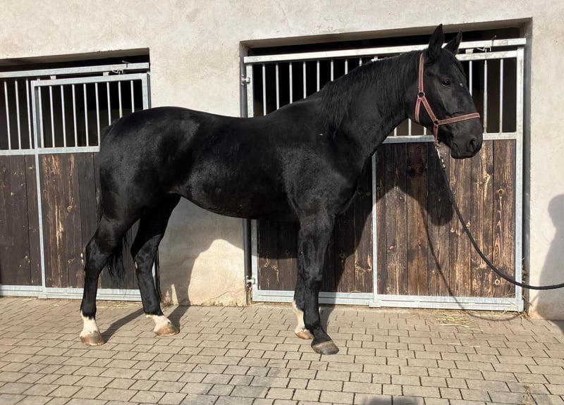 New Price for Quick Decision Makers before Christmas!!! I am offering a very stylish Warmblood mare... For sale is a beautiful black mare, born in 2021, with a height of 16.2 hh. She has papers, is healthy and robust, and is ideally suited for leisure riding. Fine is friendly and easy to handle; she was backed late and gently this spring. She is well-behaved on the ground and obedient under saddle. She has a pleasant temperament and works willingly and enthusiastically! She also has great potential to be further trained in dressage. At her previous home, she was occasionally tense but has been ridden and handled regularly. A pre-purchase exam can be arranged on-site by the buyer. We can also organize transportation to her new home. If interested, I am happy to provide more information; please contact me by phone only at 0173-6677266. Videos can be sent after an initial phone contact and only for serious inquiries!!!